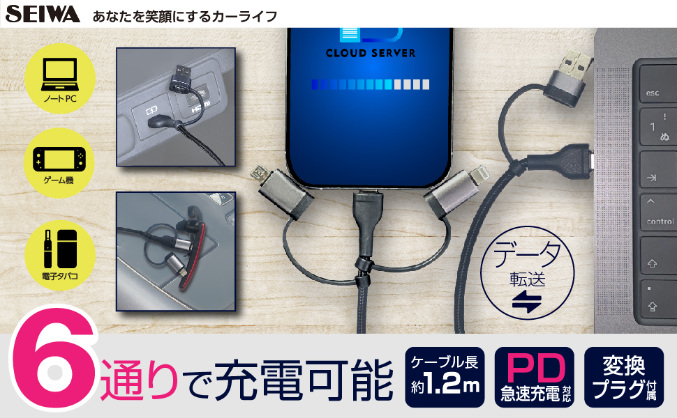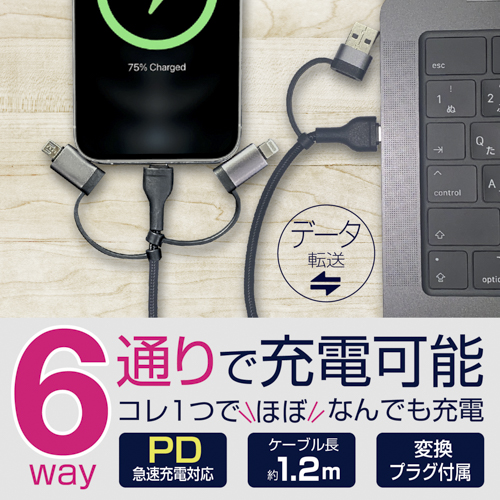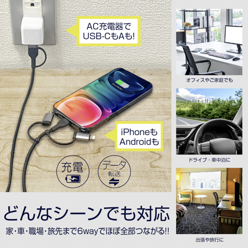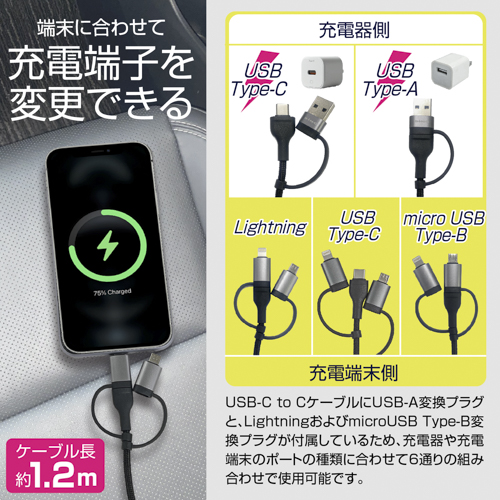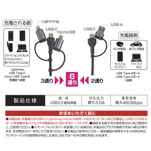 ●充電器や充電端末のポートの種類に合わせて6通りの組み合わせで使用できます。