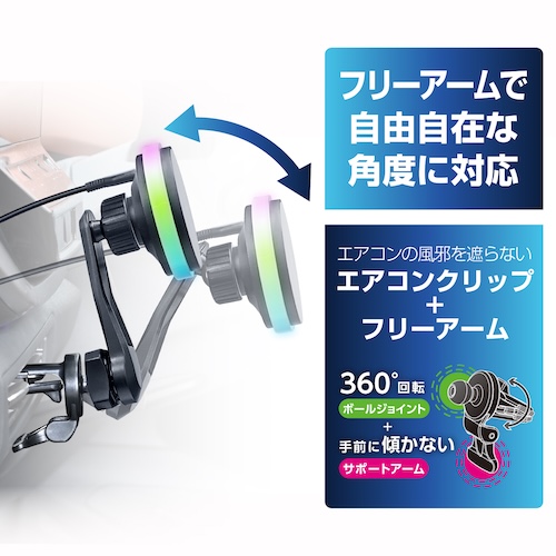 ●自由に選べる美しいオーロラ+9色のアンビエントライトで暗い車内でホルダー位置がわかります。