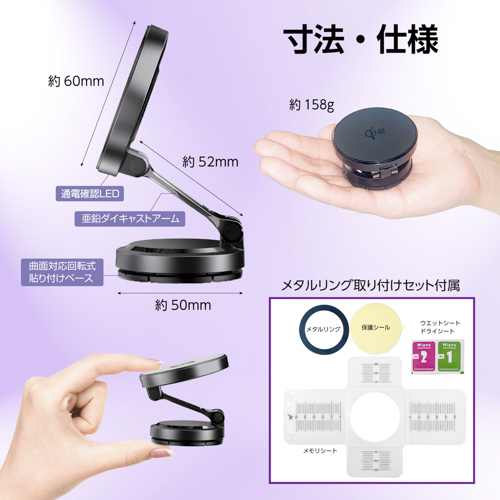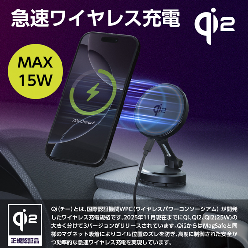 品名: マグホールドスマホ充電ホルダーQi2/DB貼付