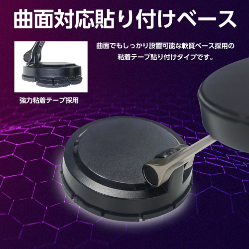 ●曲面でもしっかり設置可能な軟質ベース採用の粘着テープ貼り付けタイプです。