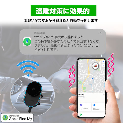●Apple Find My 認証を取得しているので、iPhoneに入っている「探す」アプリで使用できます。