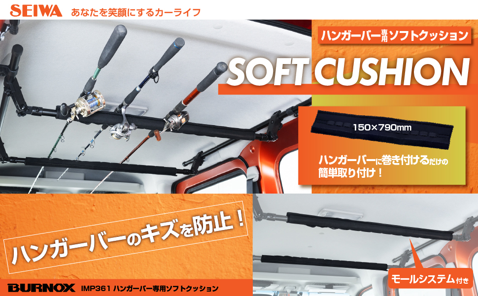 ●ハンガーバー上部にサーフィンボードや釣り竿等を固定する際にハンガーバーの金属部分が荷物に直接当たらないようにするためのクッションです。