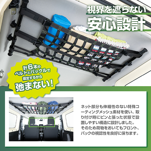 ●ネット上部に6kgまでの荷物を収納することができます。収納スペースが増え、車内をスッキリと整頓させることができます。