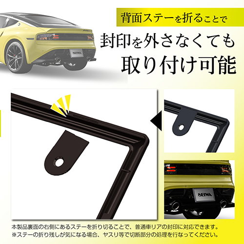 ●フロントとリアのナンバープレートに取り付けできるナンバーフレームセットです。