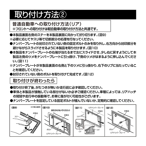 ●車の接触などによるナンバープレートの曲がりや擦り傷等を軽減します。