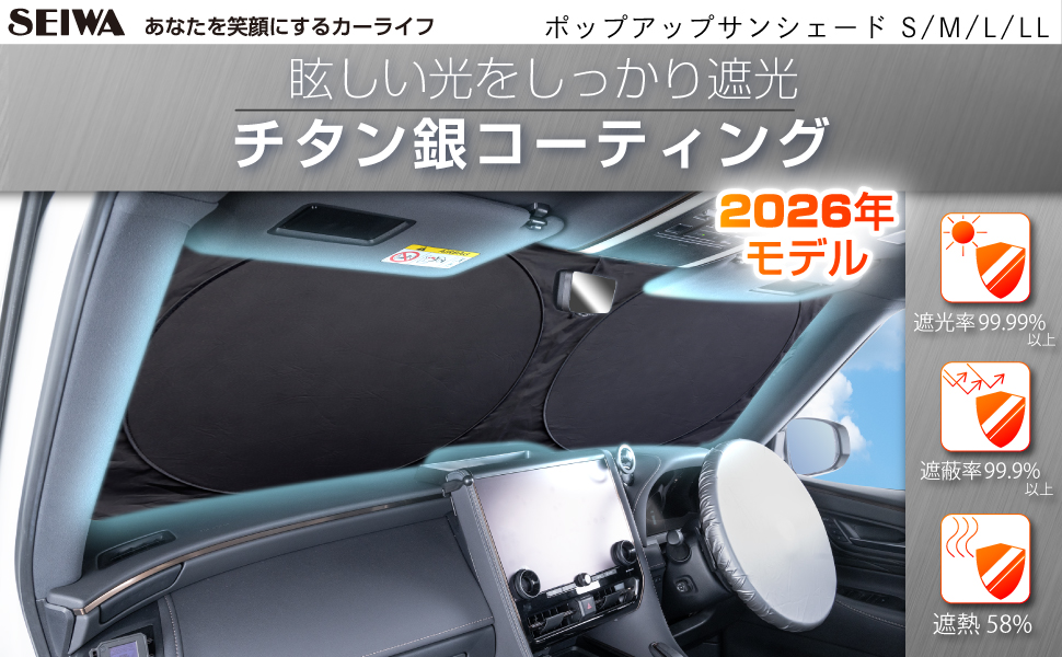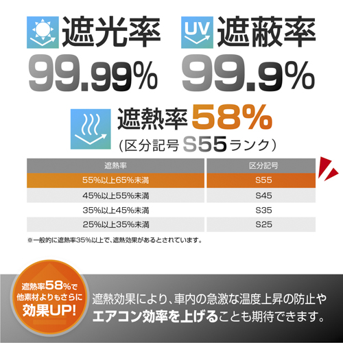 ●チタン銀コーティングでUV紫外線カット率99.9%.、遮光効果99.99%、遮熱効果58%で車内を保護します。