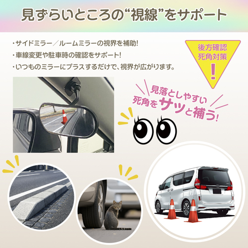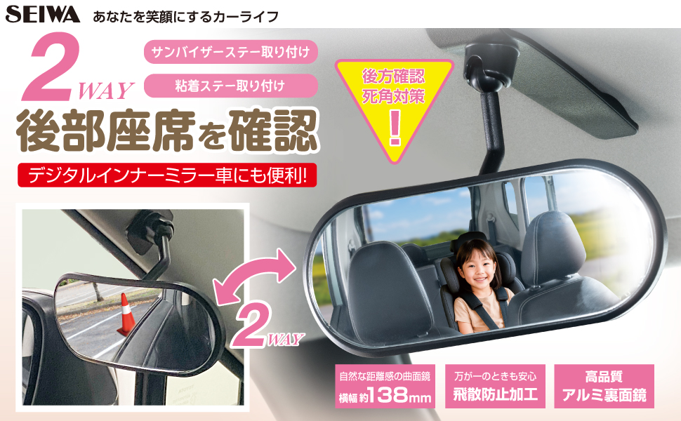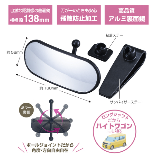 ●広い視覚で自然な距離感の曲面鏡採用(ワイド約138mm)。