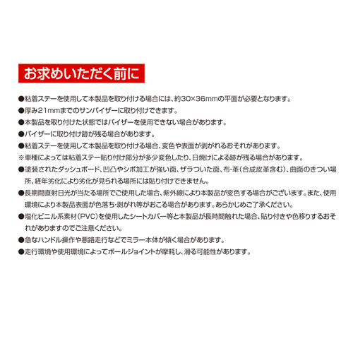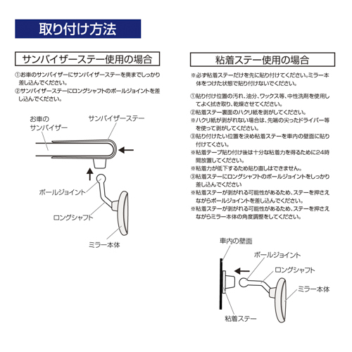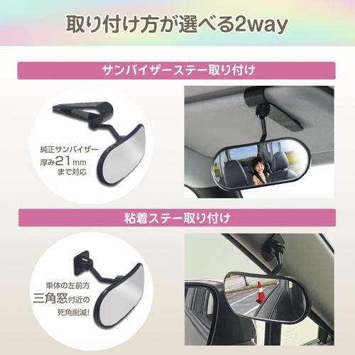 ●粘着テープでの車内貼り付けと純正サンバイザー取り付けが選べます。