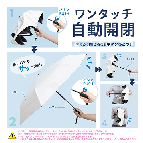 ●ワンタッチボタン式で押すだけでカンタンに傘が開きます。