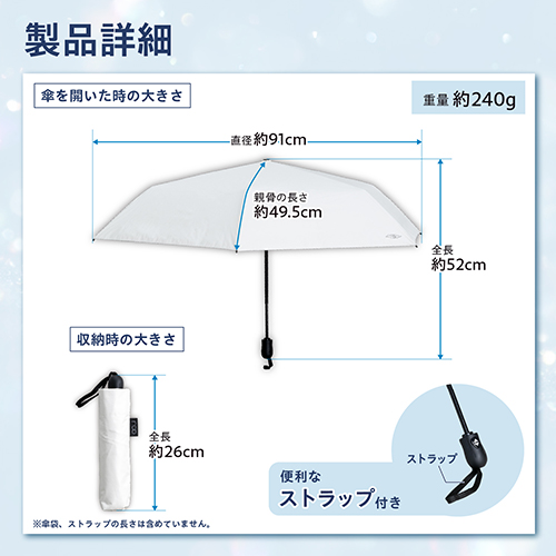●放射冷却素材ラディクール生地を採用した晴雨兼用折りたたみ傘です。
