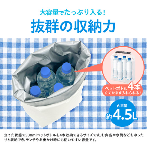 ●コンパクトながら容量は約4.5L。日常使いからレジャーまで幅広く活躍する保冷バッグです。