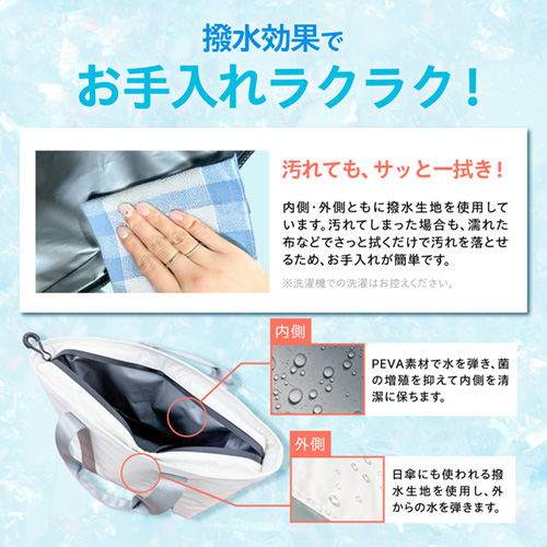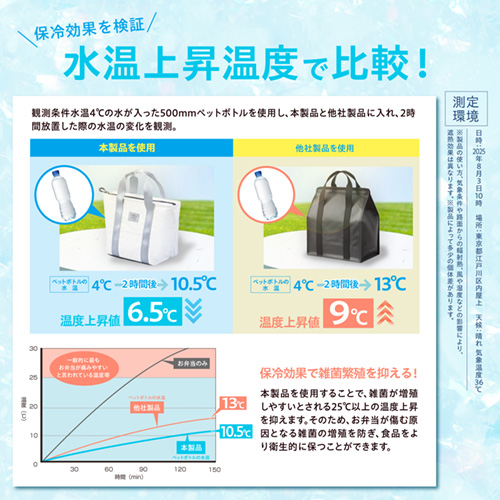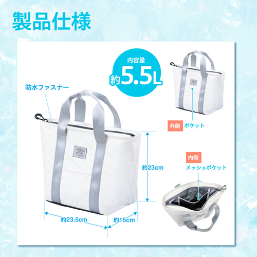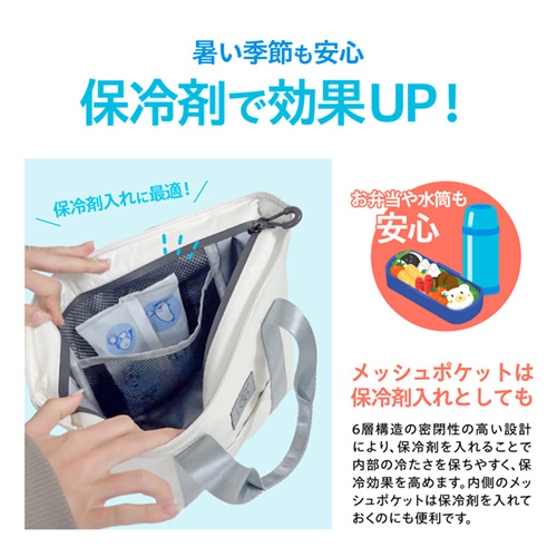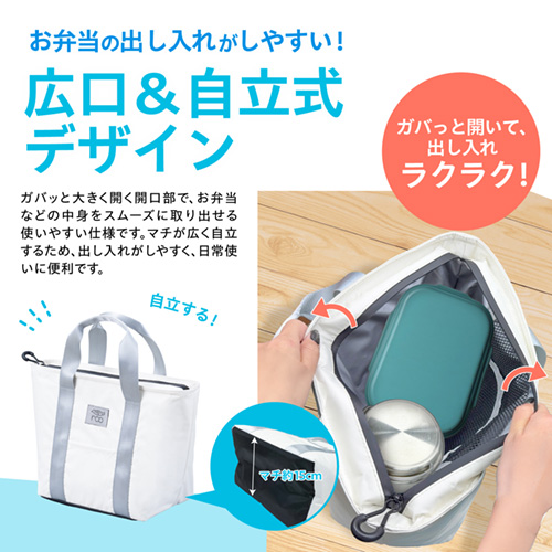 ●使いやすいランチバッグ型で、防水ファスナーを採用。隙間を極力なくす事で外気の影響を軽減します。