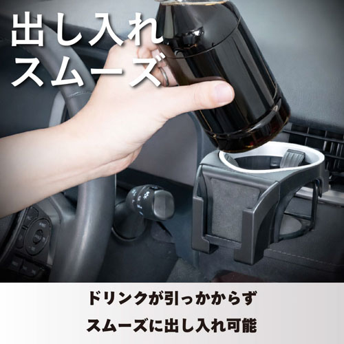 ●シリコンフラップのしなやかさに滑りの良さをプラス。様々なドリンク容器をしっかり固定して出し入れもスムーズです。