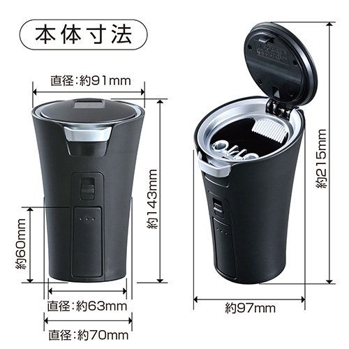 ●ワンプッシュで簡単に開くフタがついており、喫煙時のスムーズな灰捨てをサポートします。